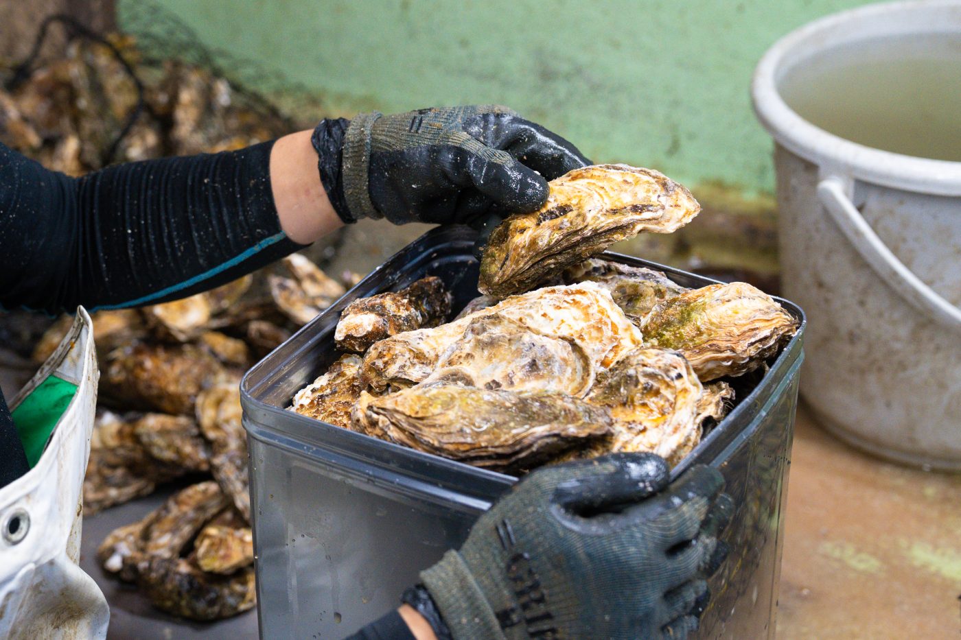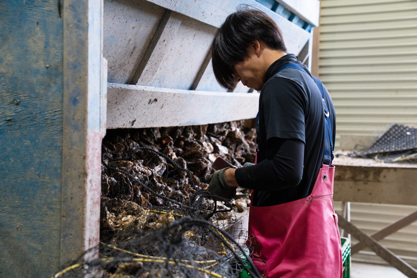 殻付き牡蠣として出荷できる品質の牡蠣を選別し、