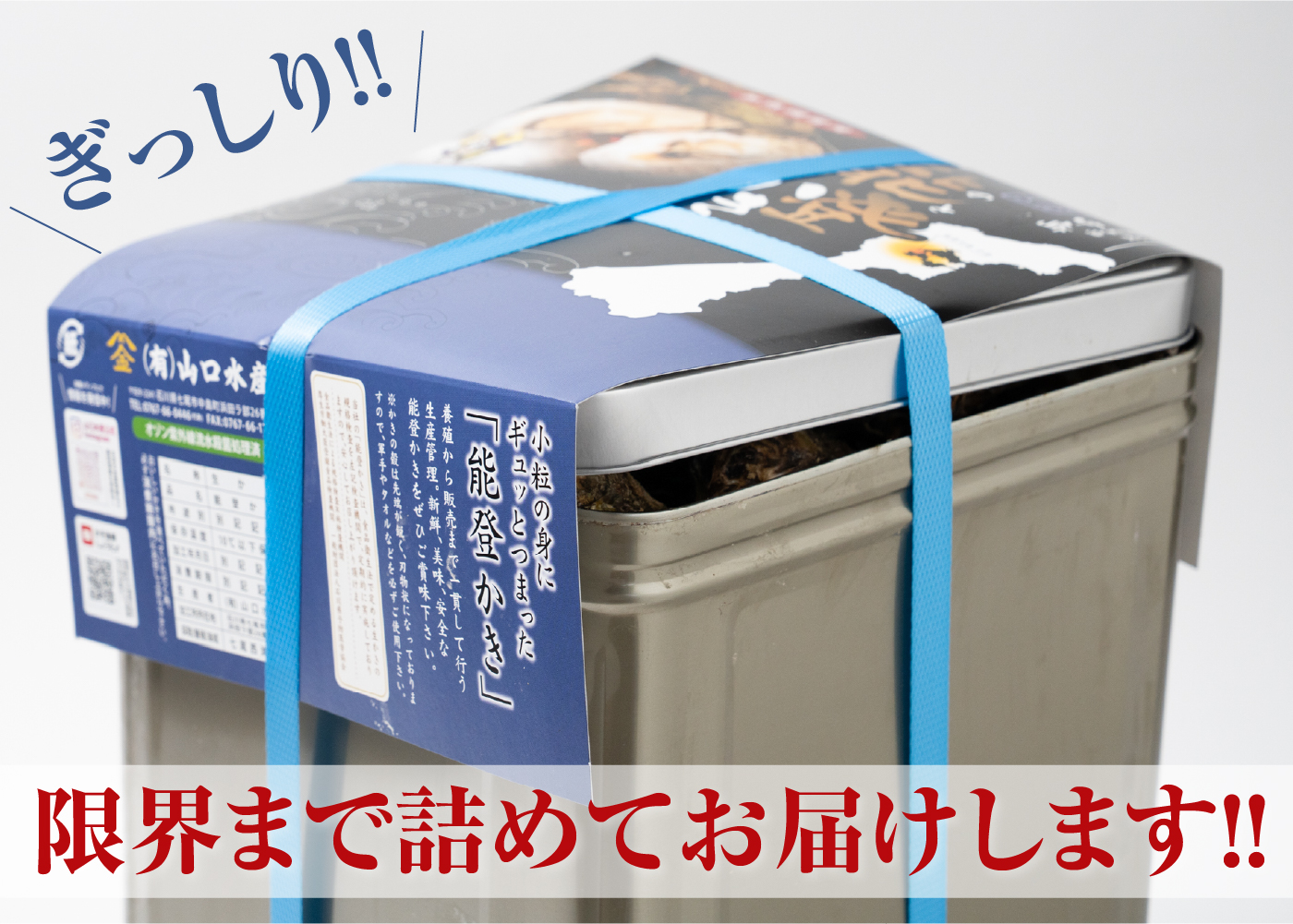 そして、殻付き牡蠣は、溢れんばかりに、缶いっぱいに、ぎっしり詰めて、発送しています。
